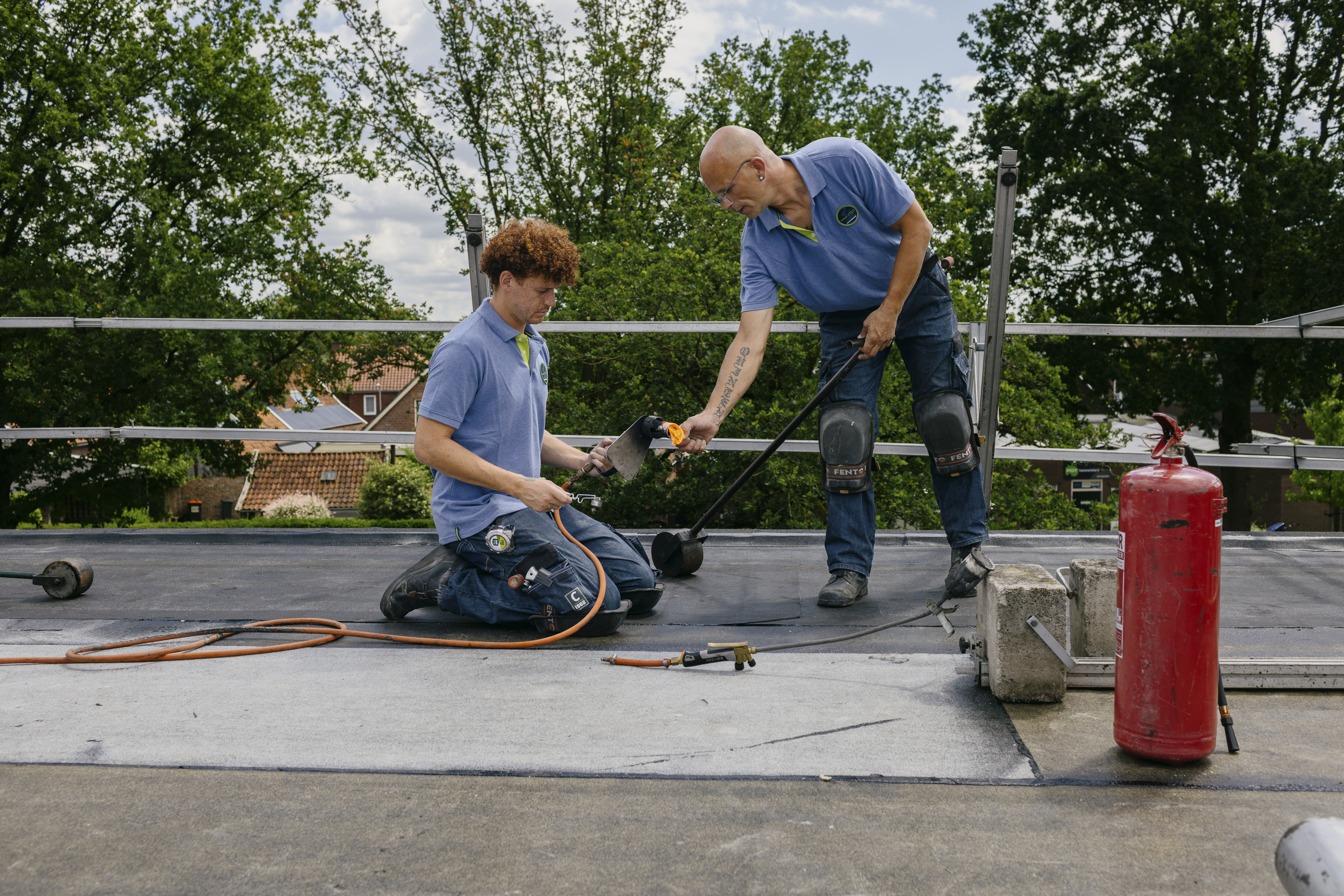 Als leerling dakdekker leer je het vak door mee te werken aan projecten in de regio. Je verhelpt bijvoorbeeld lekkages, leert hoe je een nieuwe bitumineuze dakbedekking aanbrengt en verricht onderhouds-, sloop- isolatiewerkzaamheden. Je wordt intern (door collega’s) en extern (via opleidingsinstituut Tectum) opgeleid en leert alles wat je nodig hebt om een zelfstandig dakdekker te worden. Je bent 4 dagen in de week aan het werk en gaat 1 dag naar school.